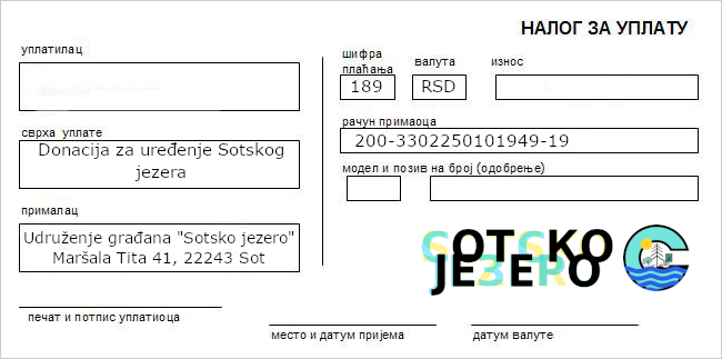 Na ovoj stranici pogledajte na koje sve načine možete donirati novac. Takođe, možete videti i neke od donatora koji su već podržali uređenje Sotskog jezera.